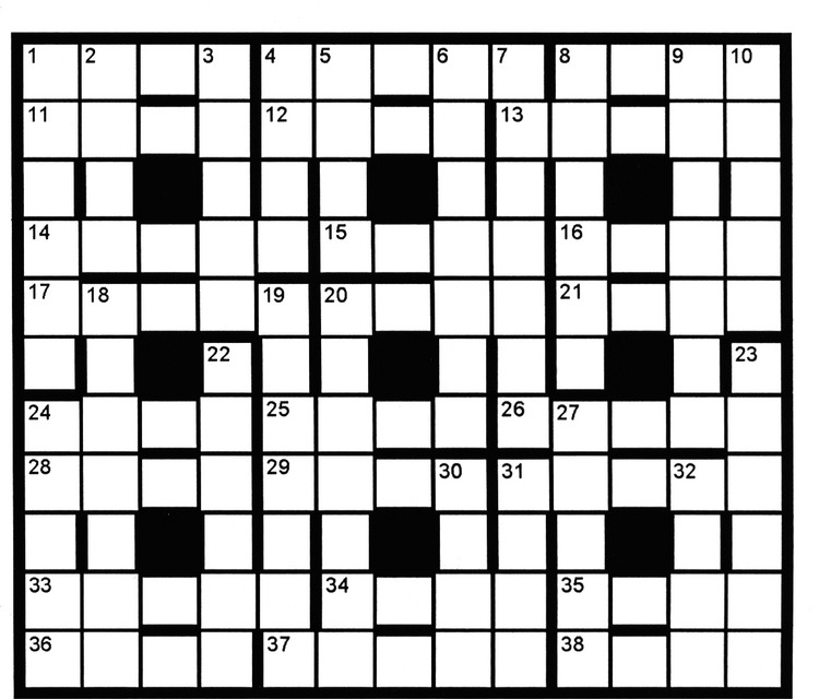 Across 1 Oil conglomerate chairman retiring around the second of April 4 Order to attack boards 8 In chemistry, pour calcium chloride, for example 11 Hot liquid swallowed by doctor 12 On a battlefield, moving in strict order 13 Bugs hunter with sound of indecision on the far side of tree 14 Turn around uncool Greek 15 Cross through Georgia (the country) 16 Is allowed to ring clinic 17 Confused, eats a novel 20 Holly's debut, in "The Piano" 21 Director is one who does battle for others 24 Suggested title for a Stephen King book 25 Retreating lines left our rear exposed 26 Soda bottles beginning to hiss and lose air 28 Television network's unusual pens 29 Empty copper had some doughnuts 31 Absorbed by Kevin Kline film shown backwards 33 Like grains falling in an hourglass 34 Captured by half-crazed Trojan War figure 35 Pound sign, used by Zorro, gives period a break 36 Principal feature of Roman doorways 37 Slimy fish with hint of dill inside 38 Pluck the strings of a Jamaican musical instrument Down 1 Conclusions reflected intelligent pattern of behavior 2 Southern State University begins with a pop 3 Slide made from photograph at hearing 4 Catch forty deer by listening 5 Made up Dutch export 6 One candle moved a nation 7 Bowl heated in the oven before most of ice cream melted 8 Tightly grasps Pontiac's tail-lights 9 Renovated worn key to the city 10 Futuristic movie centered around chromosome sample 18 General disorder, at worst 19 Andy's partner holds Tad's father up to get tiny swimmers 20 "The Sound of Music" set against "Air Supply" 22 Spoken language: Polish 23 Maniac blamed for pandemonium 24 I also address this to a center of activity 27 Initiated laughter with Britishism 30 Marines discussed part of a nuclear reactor 31 It's how you find a website describing a river in Europe 32 Cure sickly color