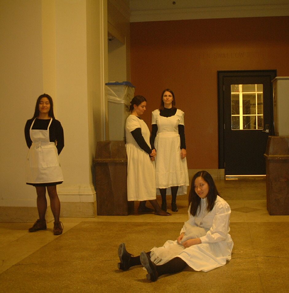 These puzzles are recreations of well-known works of art, taken in various spots around campus. Using the building numbers to take the nth letter of the artist's last name spells out POINTILLIST GEORGES, which pretty uniquely identifies SEURAT.