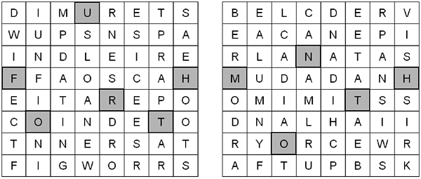 Solvers have to figure out which answers go into which grid, and when each answer turns. When the grids are properly filled in, the turning points of the eleven non-numbered answers spell out the phrase FOURTH MONTH. The answer to the puzzle is APRIL.
