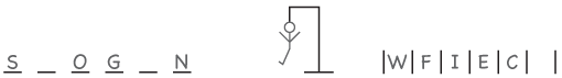 These games of Hangman were all one wrong guess away from being lost, as shown below. Each player then came through, winning his game by making one or more correct guesses, resulting in each case in a single, uncapitalized word. There were a total of 26 such guesses, all of them different.