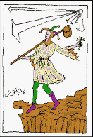 The Fool: The fool, brightly colored, walks to the edge of doom