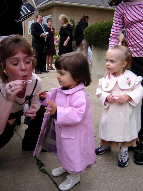 Julie demonstrates proper bubble blowing techniques.