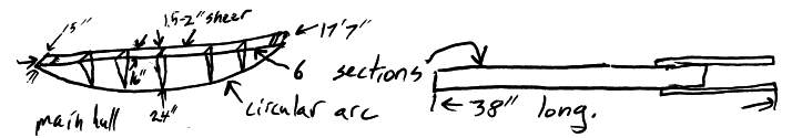 Main hull. 15" 16" 1.5-2" sheer 24"