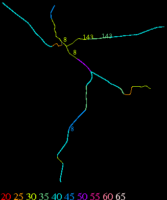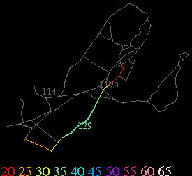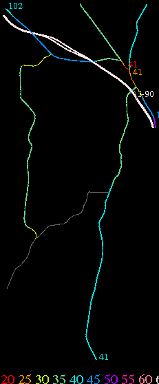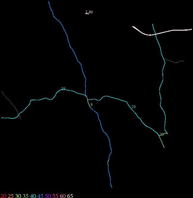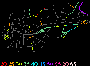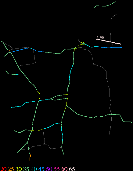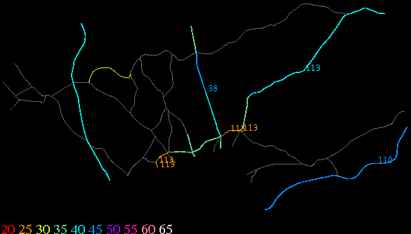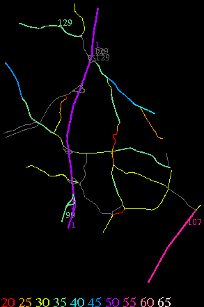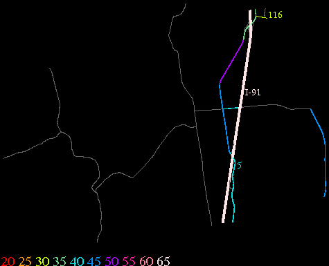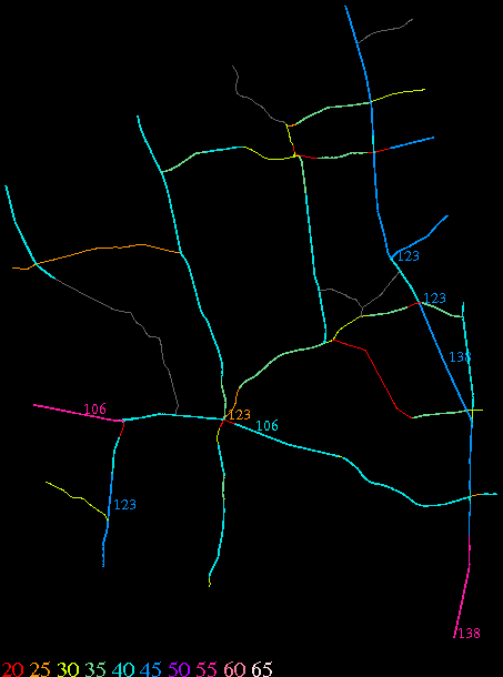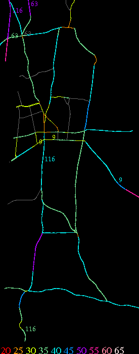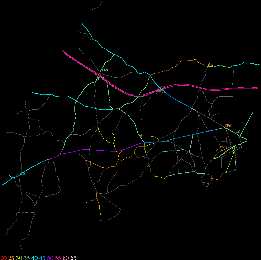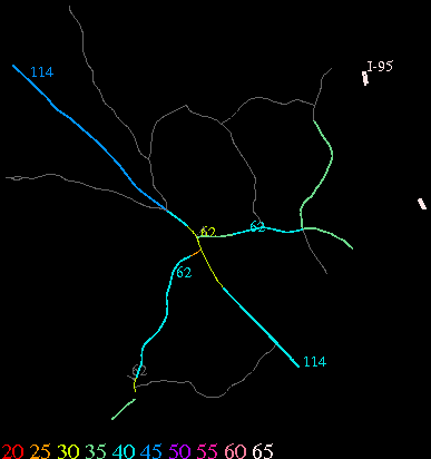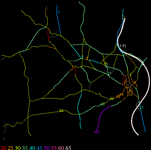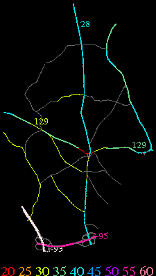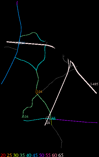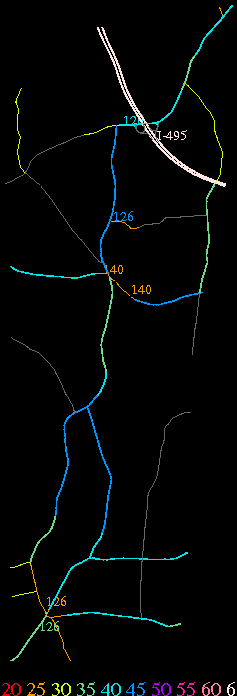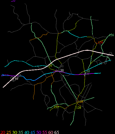 Links lead to maps of roads in Massachusetts cities and towns. The scale is 30 meters per pixel. Color indicates posted speed limit.
