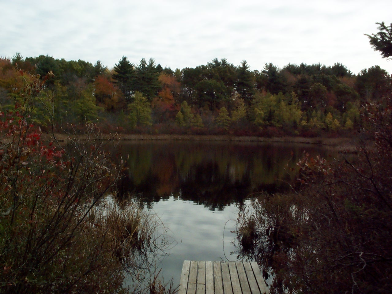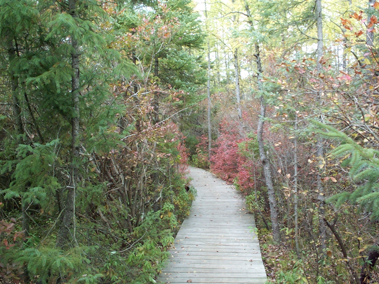The Bog and the boardwalk through the bog. According to Fifty Hikes in Massachusetts the vegetation is typically found much further north. Being in a hollow subject to frost, the bog has a shorter growing season than the surrounding area.
