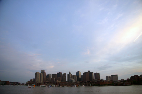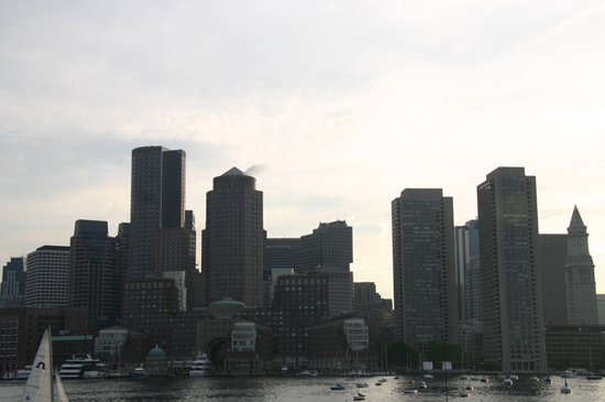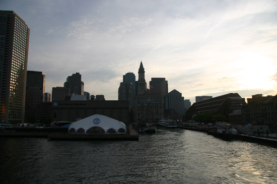 Boston skyline from ship leaving dock