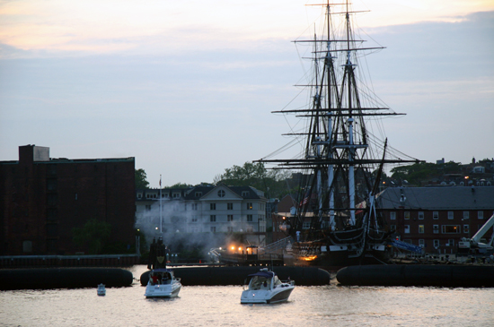 USS Constitution firing guns to signal end of the day