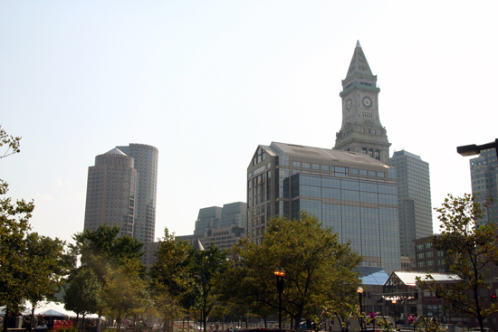 View of Harbor from Christopher Columbus Park. See Long Wharf on the