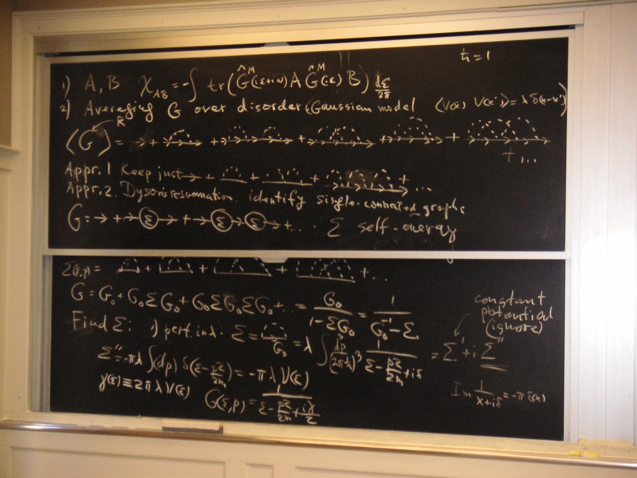 Lecture 12: Averaging Greens functions over disorder; the = approximation, Drude result for conductivity