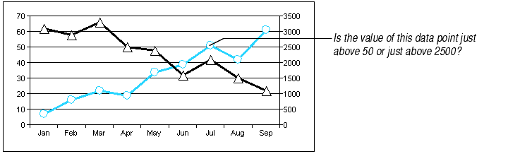 A problem with plotting different series on different Y axes is that the chart itself doesn't indicate which series corresponds to which Y axis. This can be quite confusing because the viewer can't immediately identify the values of individual data points.