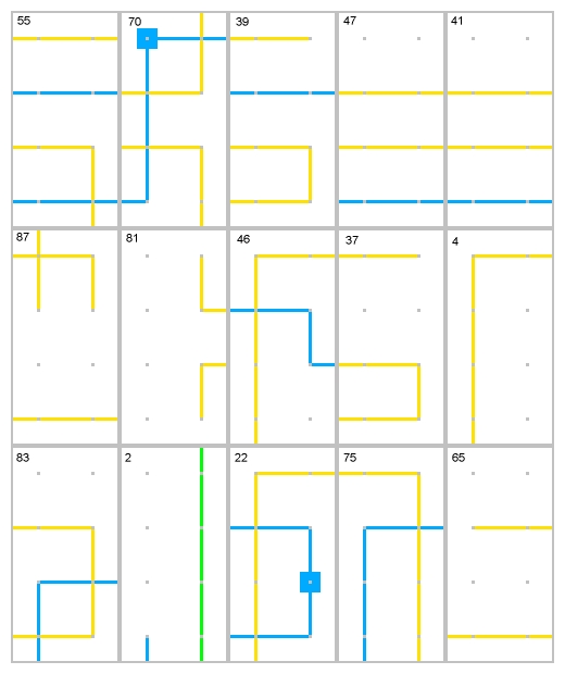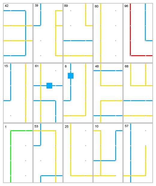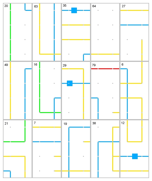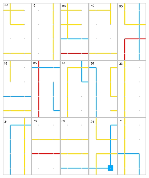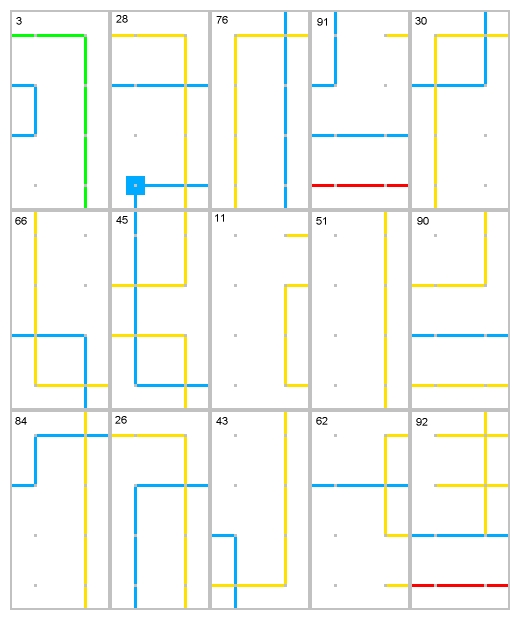 This process is most easily done by seperating out first the red and green lines. Those are the easiest to put together, because there are fewer of them.