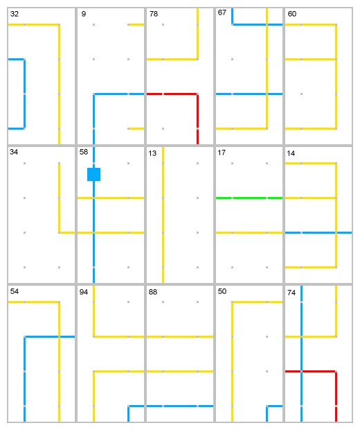 Furthermore, some patterns may be seen in the colored lines. There are many cards with yellow lines which have 'dead-ends', in which a clear line ending is visible. Since at least one symbol can be seen (the '#'), then it might be guessed that the dead-end yellow lines are parts of other symbols. The blue lines only have two dead-ends.
