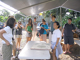 | Mahina Duarte explains to the students how native fish ponds are operated |