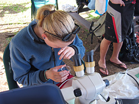 Kristen is counting zooplankton from her plankton tow sample |
