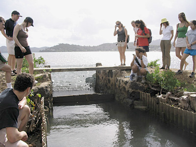 | Mahina Duarte explains to the students how native fish ponds are operated |