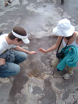 | Steam vents in the floor of the crater |