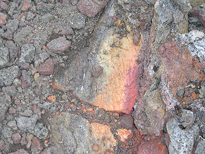 | Colored lava on the floor of the crater due to variations in mineral composition |