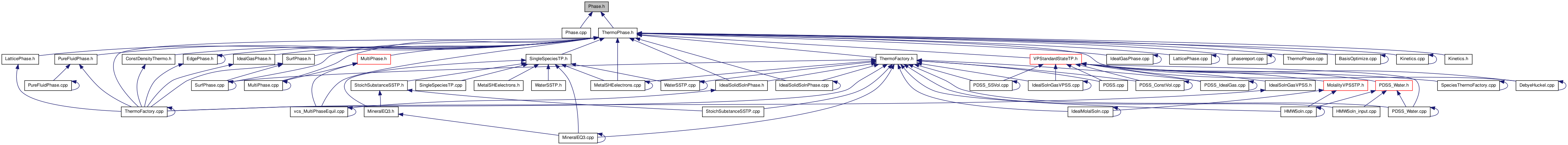 Header file for class, Phase, which contains functions for setting the state of a phase, and for referencing species by name, and also contains text for the module phases (see Models of Phases of Matter and class Phase). More...