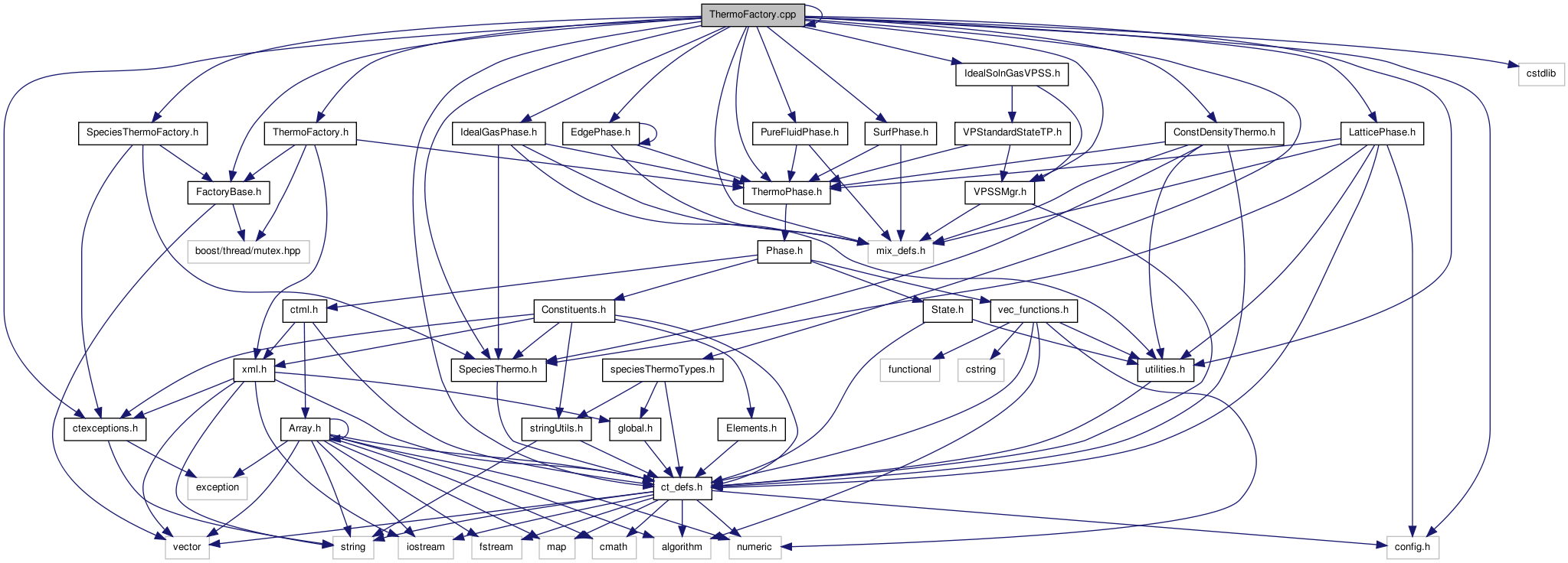 Definitions for the factory class that can create known ThermoPhase objects (see Thermodynamic Properties and class ThermoFactory).