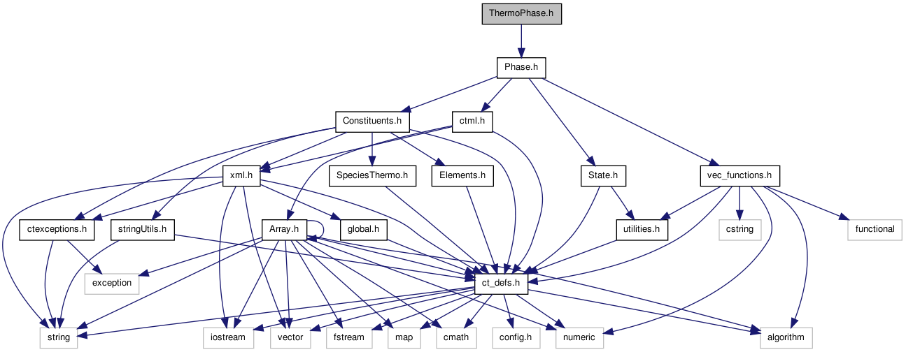 Header file for class ThermoPhase, the base class for phases with thermodynamic properties, and the text for the Module thermoprops (see Thermodynamic Properties and class ThermoPhase).