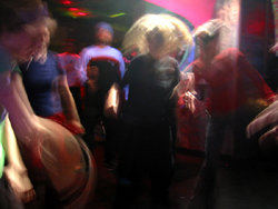 Its 10pm, Weds, and half a dozen people have spent the past hour transforming the downstairs bar of Vertigo Lounge from a generic downtown bar into a psychedelic underground, furnishing the space with ultraviolet lights, wall hangings and an electronic beat. Wednesday night is Anitya at Vertigo- the only night of the week there is no dress code at Vertigo and the only Goa weekly in Boston. The room fills the same way week to week- first with the setup crew from Changmian Productions, a local production company with about 20 members. The resident DJs remain at the booth, one starts spinning, some of the crew starts dancing, and some leave to grab dinner. The doors are opened, and people walk down the stairs, across the floor, and to the edges of the room to say hello to friends as the beat picks up. Leaning on the bar, Renee tells me shell be leaving by midnight tonight. She hands me her new business card and explains that shell be working 14 hours a day the next three days. Also a member of Changmian, Renee comes to Anitya every few weeks- to support the night and to spend time with her friends. 12midnite, the Boston Burning Man meet and greet ends, and a dozen people head over to Vertigo. Theyll walk down the stairs and onto the dance floor around just after midnight. By 12.30am, people have filled the room, and bodies move around the floor- dancing, stomping, spinning- motion that wont stop until 2am, when the DJ stops mixing and the bouncers turn the red house lights back up. Most of crowd is the same week to week, and you start to recognize people through the black light by patterns in their movement. But before you recognize individual people, the room is a space of synchronous sound and motion. | |