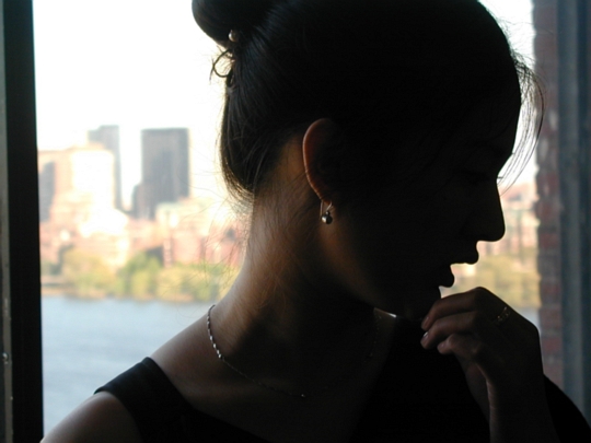 | Catherine I. Shaw (MIT '03) pauses as she gets ready for a formal fraternity social event. | |