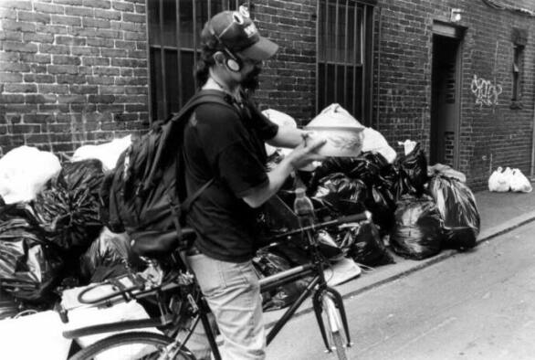 Vinnie, a former garbage-man himself, finds and repairs computer equipment, and knows what to look for. He holds a hand-turned pot which he found earlier that day.