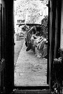 The view from inside my house to the alley. A man is seen eyeing the recyclables.