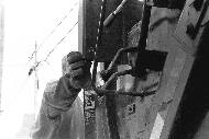 | Mike operates the "hopper" controls.