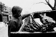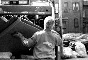 Recycling has been around for about 5 years in the Back Bay, but "people are getting ruder," Mike says, throwing a recyclable can into the truck.
