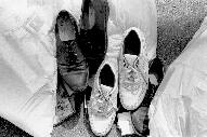 Shoes, left among the trash bags. Some residents, like Jackie, feels internal conflict. "Part of you wants to help them, and part of you doesn't want them to go through your trash."