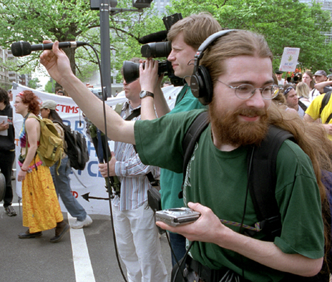 getting accurate news and fair reporting is still possible." Mark Weaver records protests outside the World Bank in Washington, DC for No Censorship Radio, a WMBR show with the motto, "Art, Activism, and Anarchy." |