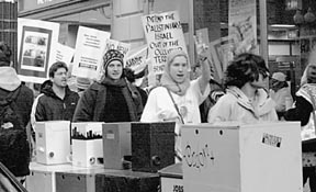 for Israeli students. After a picture that I took of Aimee Smith and her husband Anton Van Der Ven at a pro-Palestinian rally appeared in the Tech, copies of an letter were posted on the bulletin boards near Aimee's office. On the bottom, right-hand corner of the letter, the anonymous author had reproduced my photograph. "As much as I appreciate your need to fight for all right causes and your will to change the world," it said, "I think it's about time you'll hear what some people think of your protests. Have you ever lived in a place where going downtown for shopping was dangerous? Have you ever comforted a woman who lost her children when they were having lunch at a restaurant? Have you ever even been to the middle-east?" |