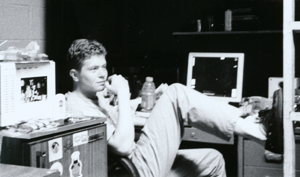 | In addition to intramurals, Sunday is a big workday. After two days of parties and relaxing, it's time for most brothers to get back into schoolwork. Starting at around 3:00 PM, the common room and the chapter room, gradually start filling with people doing work. The music in the common room is way up, but scattered all over the floor and tables are books and papers. Some brothers prefer the quiet of their own rooms, but many like to work with each other in small groups. One brother, Dave can almost always be found in the common room supposedly doing homework, but in reality chatting away with everyone and anyone nearby. It's no wonder he was voted Best Spewer this past semester. The term "spewer" is used to refer to someone who constantly spends his time in the common room talking to whoever comes by. The hours until dinner pass quickly, and at 6:00 PM, the dinner bell is dinged twice. Once again, books are left lying around as the brothers troop into the dining room for their meal. |