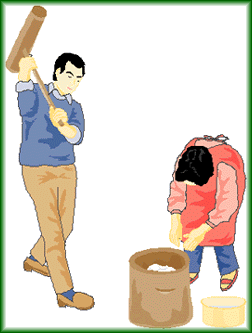 Also, some Japanese finish pounding mochi, sticky rice cake, by