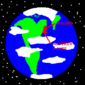 This is the world. See where Matthew and Jake are. See where Walden is. It's not actually the same spot. Walden is a place with a pond, coincidentally called "Walden Pond". The pond is wet, the rest of it isn't.