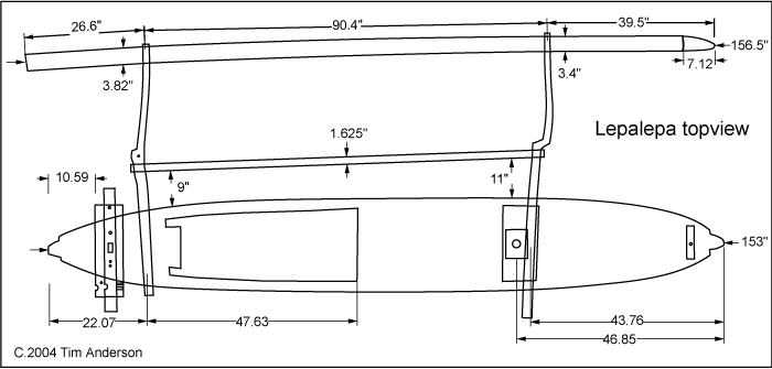 | The Bugis ethnic group of Sulawesi are famous for their maritime exploits. These exploits once included enough piracy to inspire our word "boogey-man" or "bogey-man". Today their huge fleet of wooden "Pinisi" ships carry freight all around the islands of S.E. Asia. Less known are their outrigger canoes. Here's one particularly cute example of the "Lepa-lepa". Syamsuryadi aka "Syamsu" built it in 1999 for fishing. It carries one person and is one of the fastest canoes in the village. "as fast as a motorboat". He keeps it on the beach across from his house in the village of Sapolohe on the outskirts of the shipbuilding village of Bontobahari, in Bulukumba district of Sulawesi, near Bira at the southern tip of the island. He kindly let me measure it and hopefully people all over the world will start building their own. | ![]() |