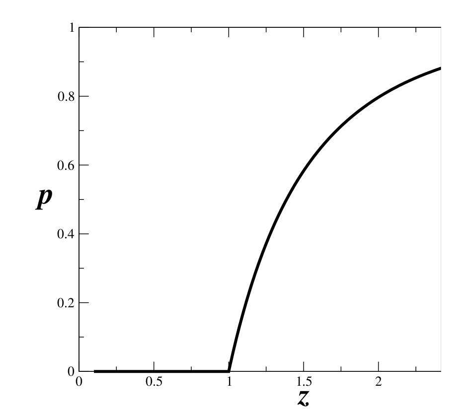 Probability of belonging to the giant island as a function of the average connectivty
