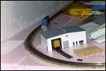 A loop of track on an infinite plain of pink. A building has gone up at this point, and the train can run around on it.