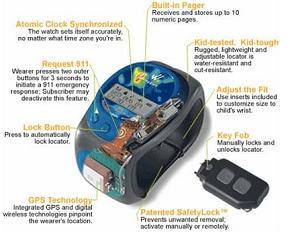 Once the child is old enough to leave the house, the number of potential dangers multiplies, and there are accordingly a number of tools to track the child's location to keep him safe. The Bladerunner jacket, for example, has a battery-operated device embedded in the seams of the jacket that tracks a child's position anywhere in the world to within a four meter radius; by interacting with Google maps, it is able to send updates every 10 seconds to the parent's computer, cell phone or personal digital device pinpointing the child's location (Ubergizmo 2007). The Wherify Wristwatch offers a similar GPS tracking device installed in a child's wristwatch. The watch is locked to the child's wrist to prevent loss or unwanted removal. There is a remote unlock feature allowing the "watchful" parent to govern when the child can take off the watch (e.g., for swimming). If the watch is lost or stolen the parent can locate it.