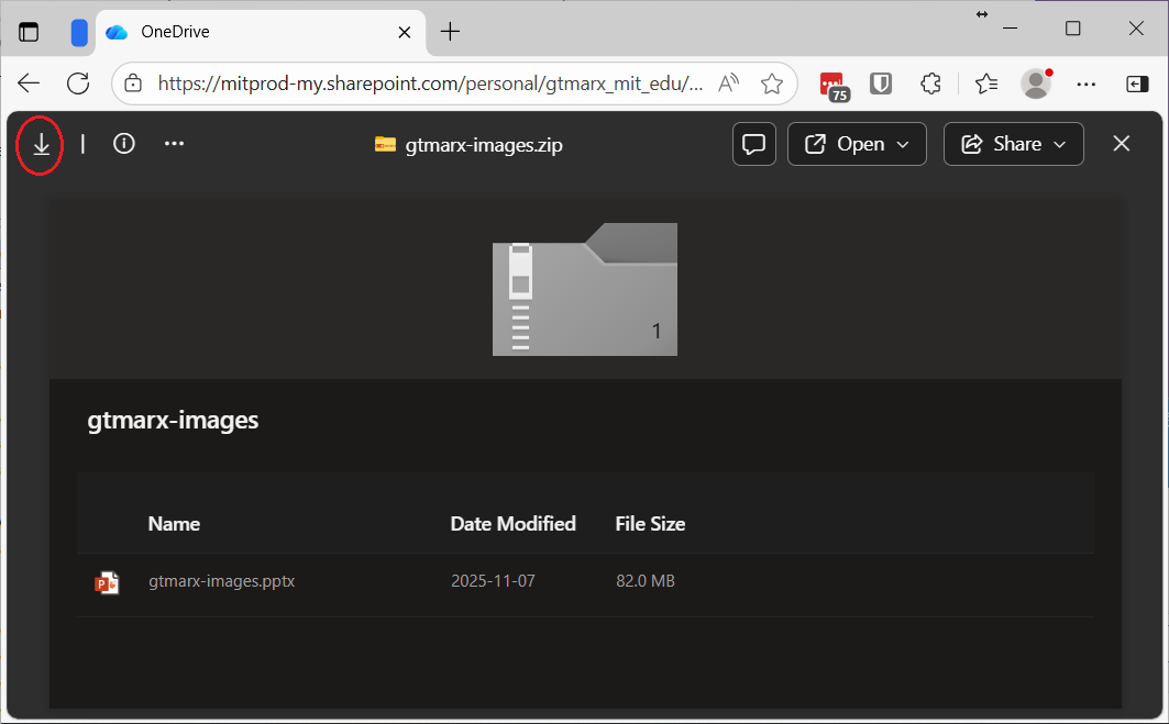 The file (gtmarx-images.pptx) will be extracted to the same location in which the .zip file resides. You can then work with and extract the images in the file.