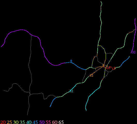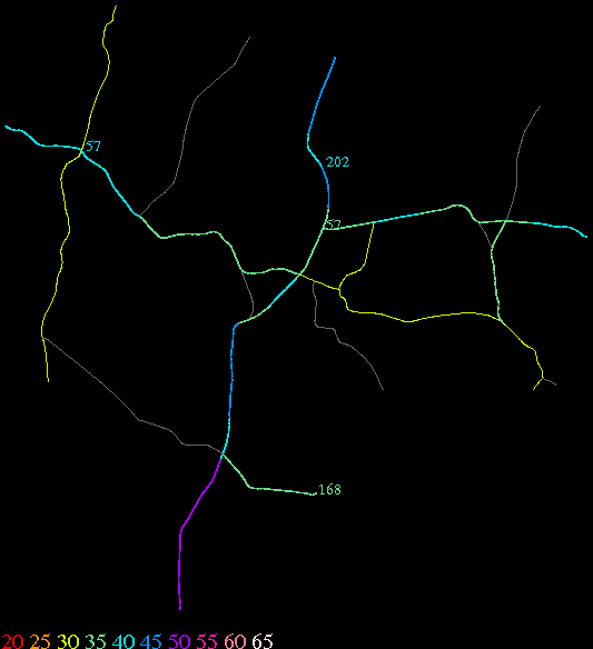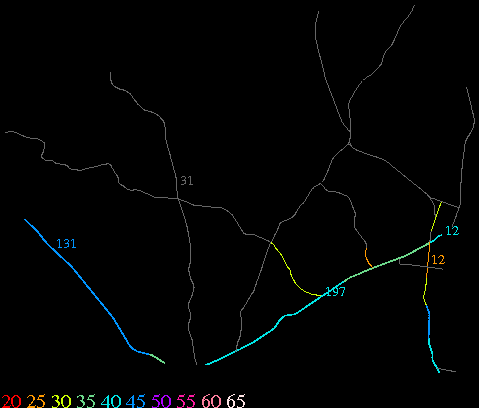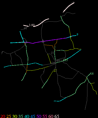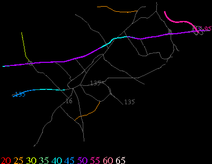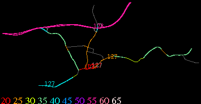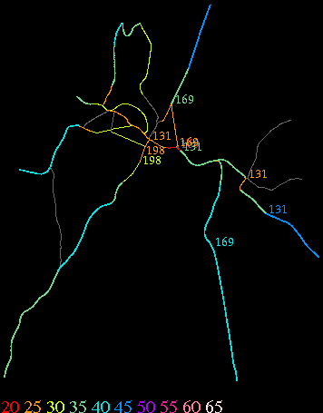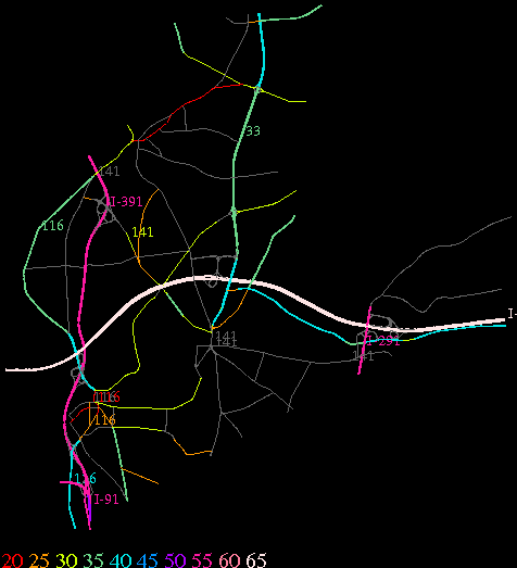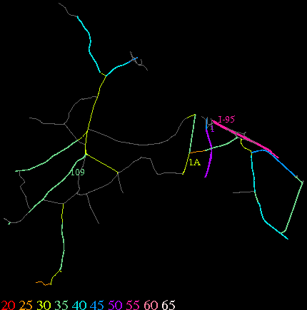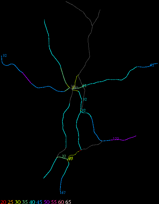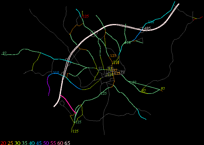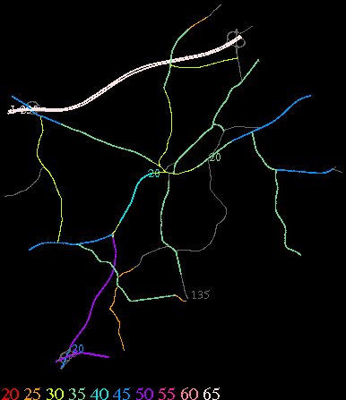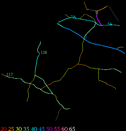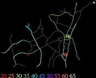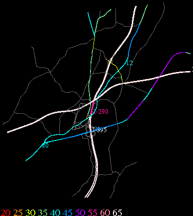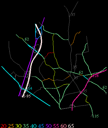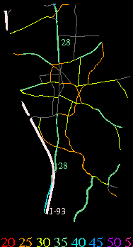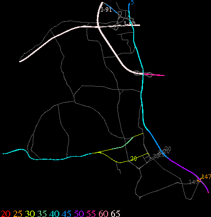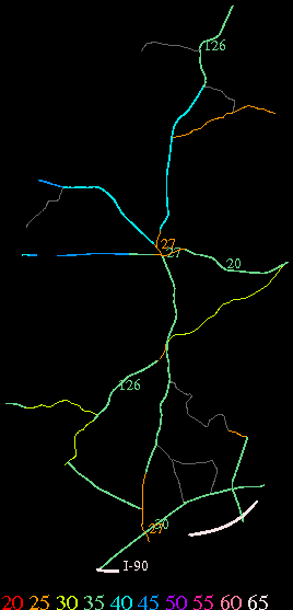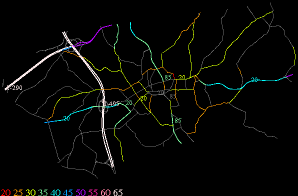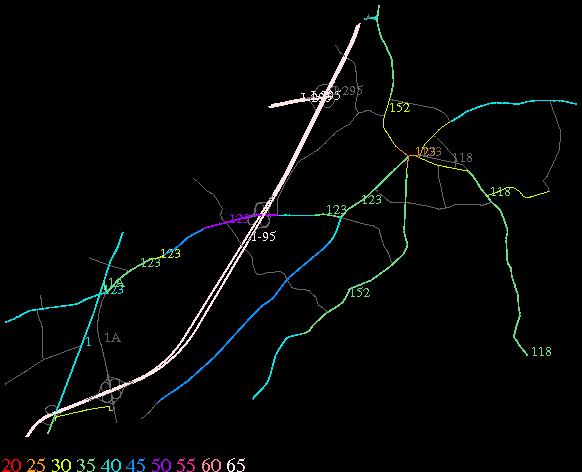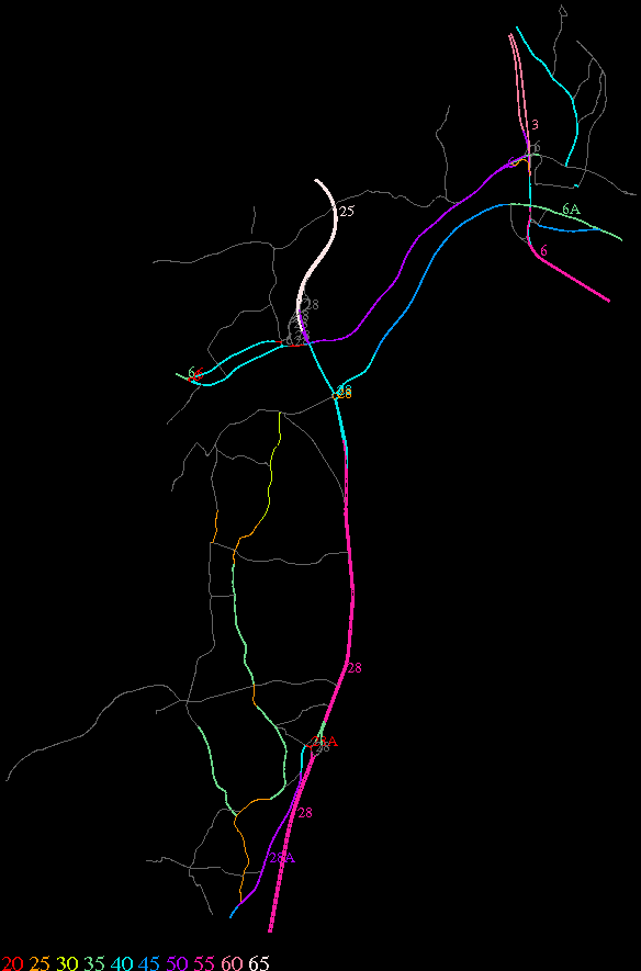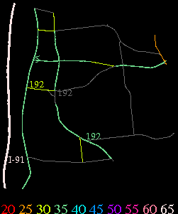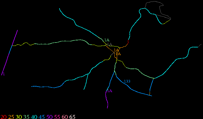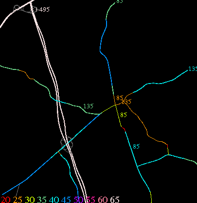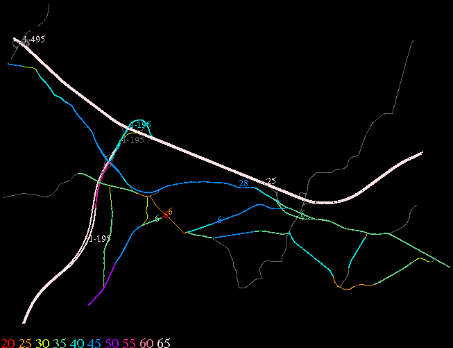 Links lead to maps of roads in Massachusetts cities and towns. The scale is 30 meters per pixel. Color indicates posted speed limit.