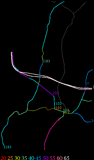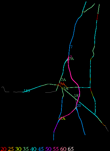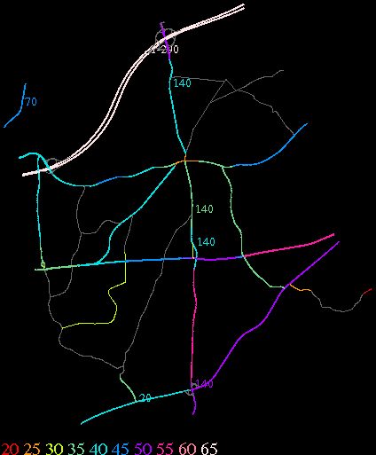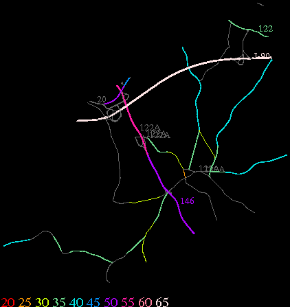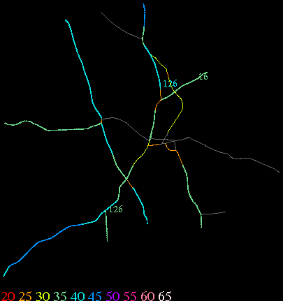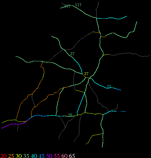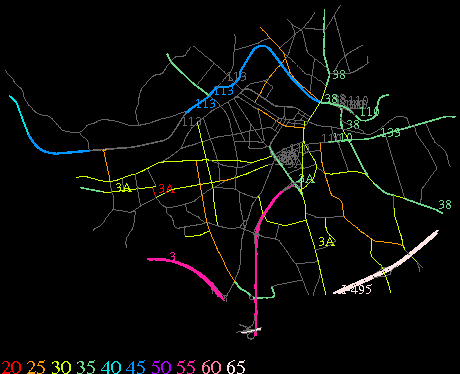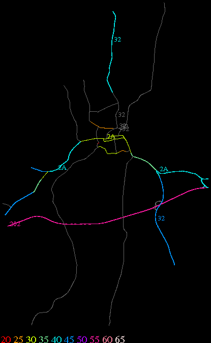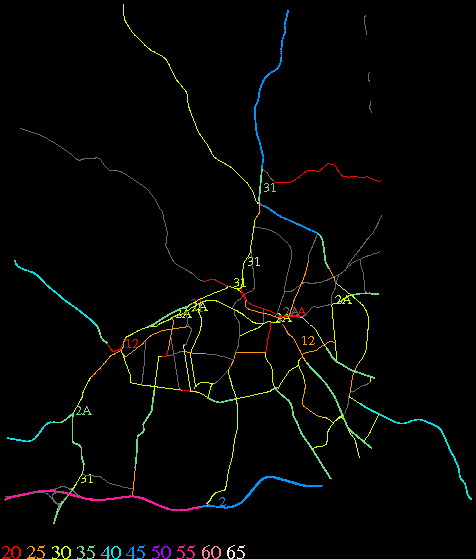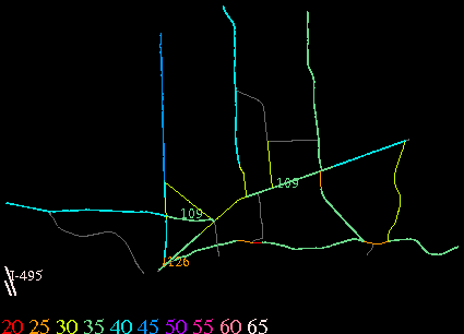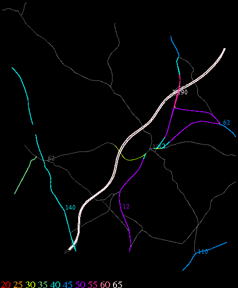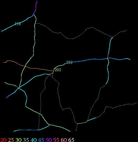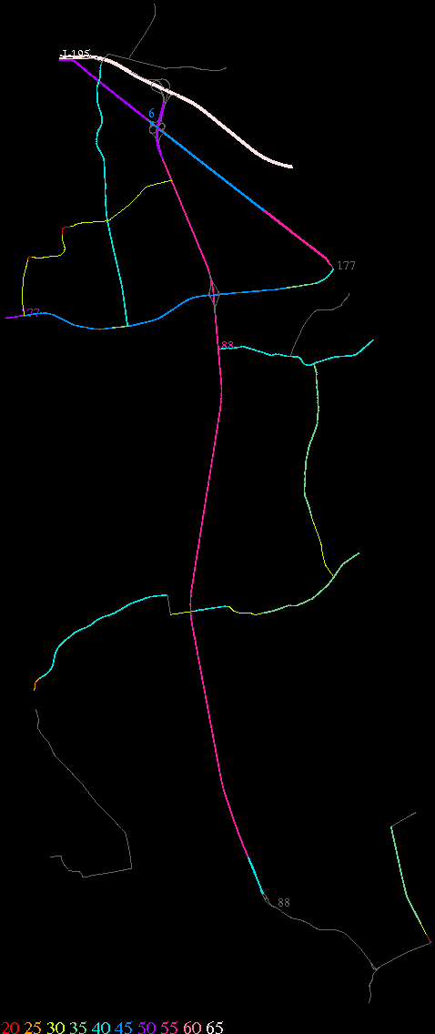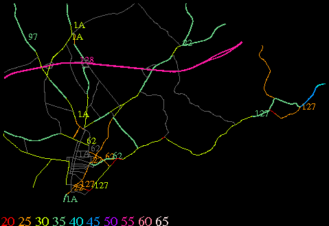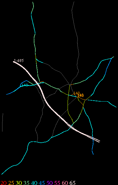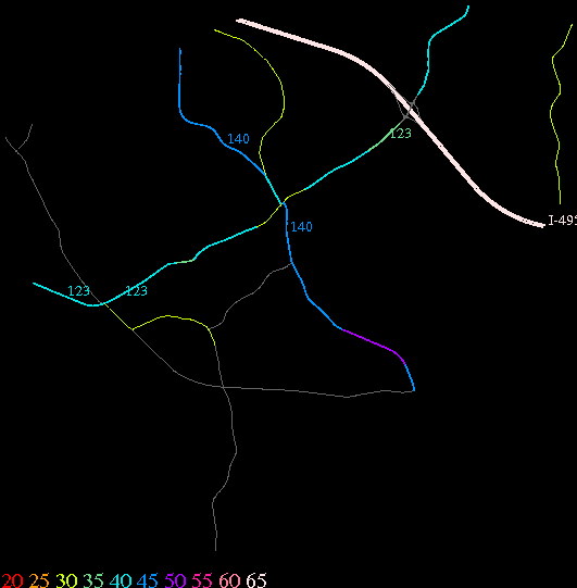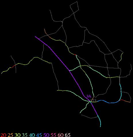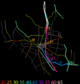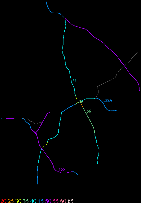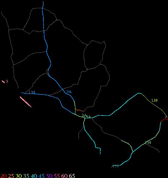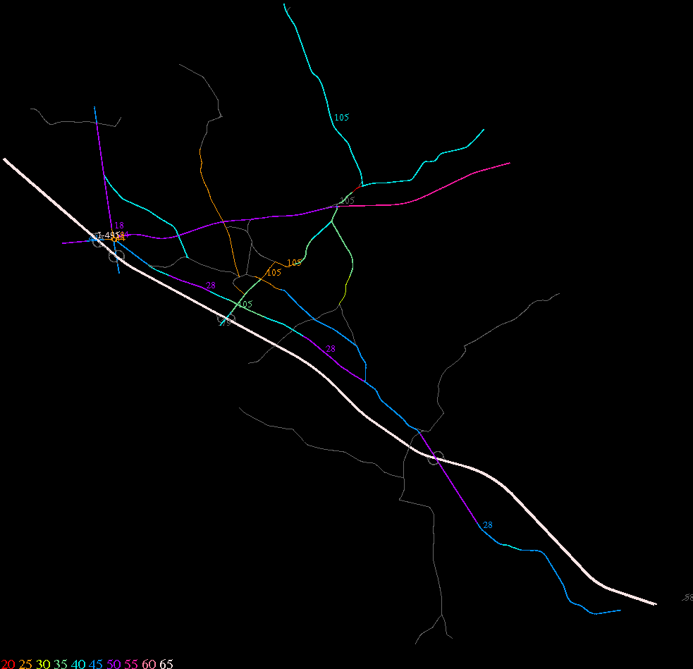 Links lead to maps of roads in Massachusetts cities and towns. The scale is 30 meters per pixel. Color indicates posted speed limit.