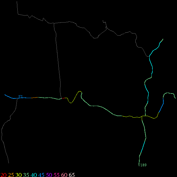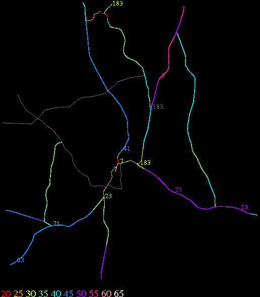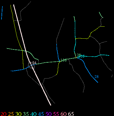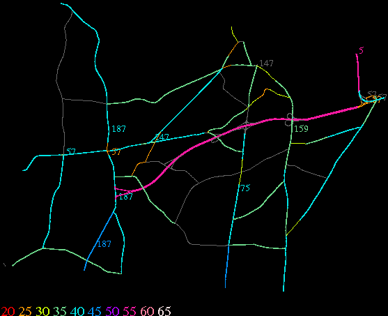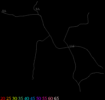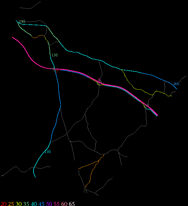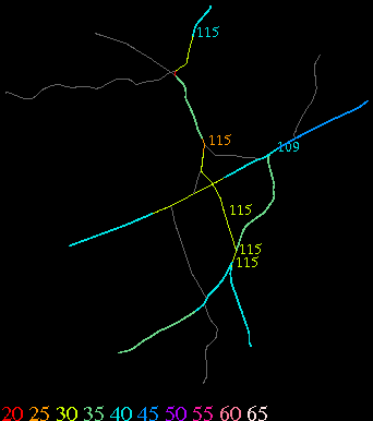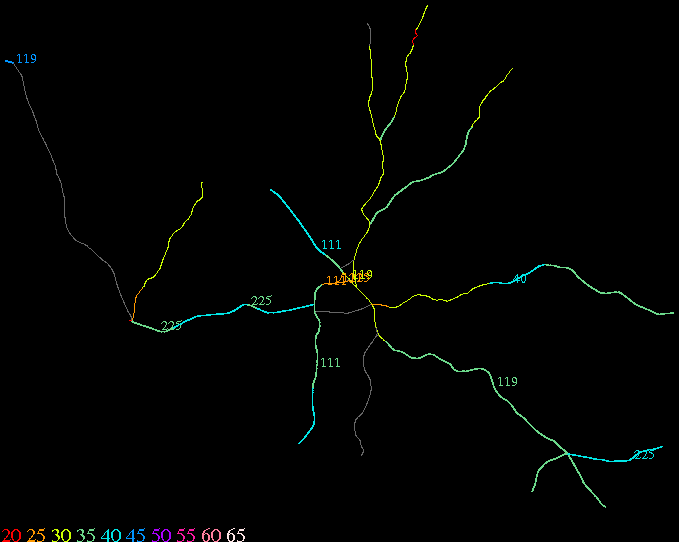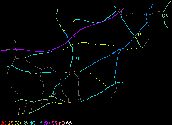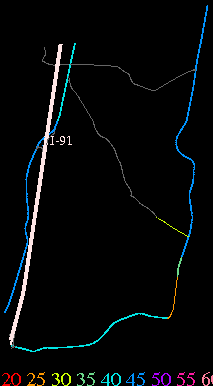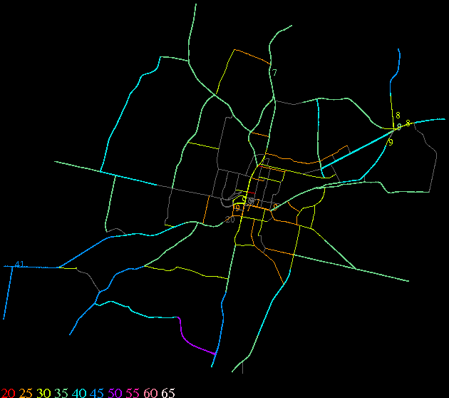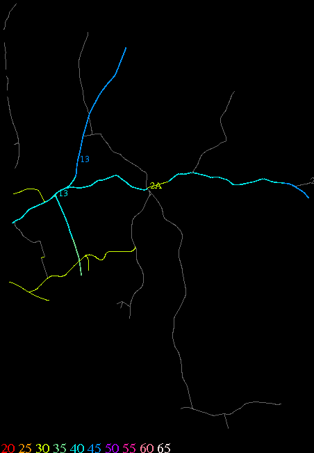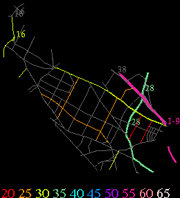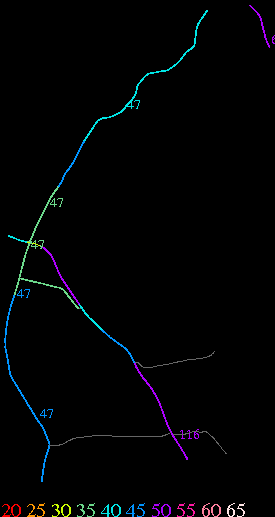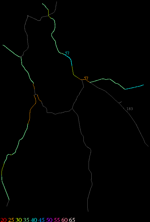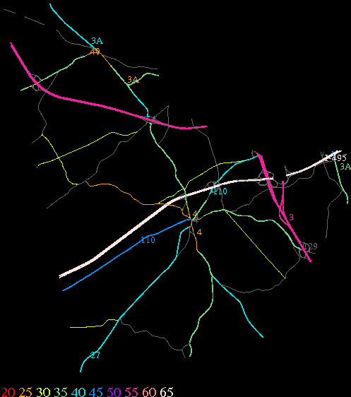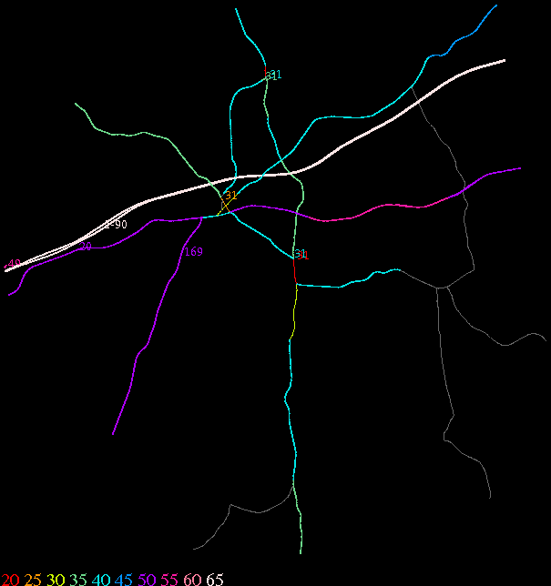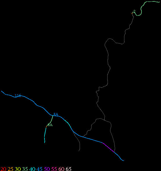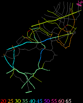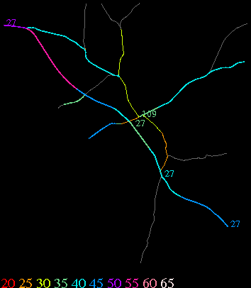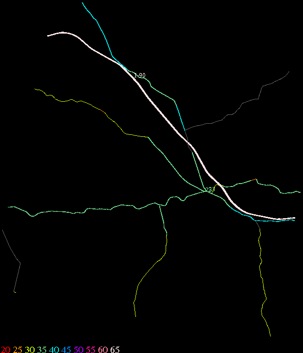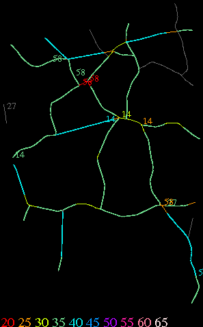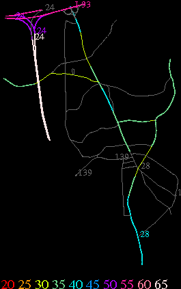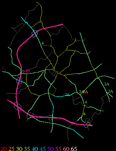 Links lead to maps of roads in Massachusetts cities and towns. The scale is 30 meters per pixel. Color indicates posted speed limit.