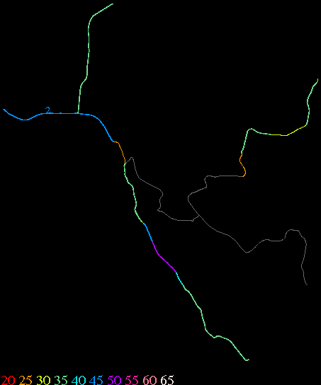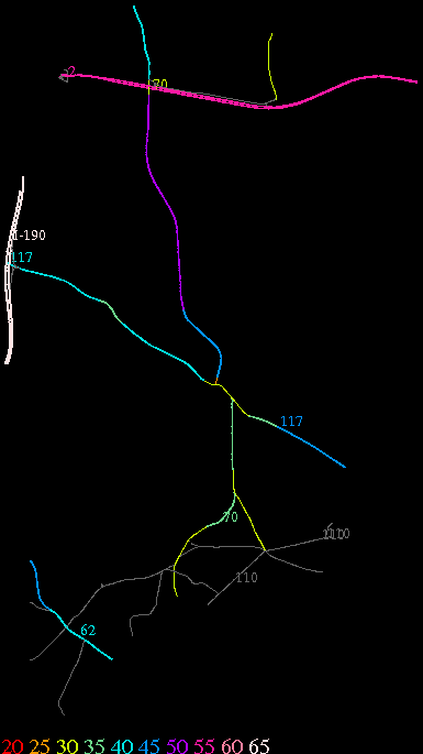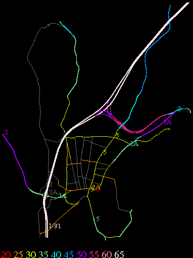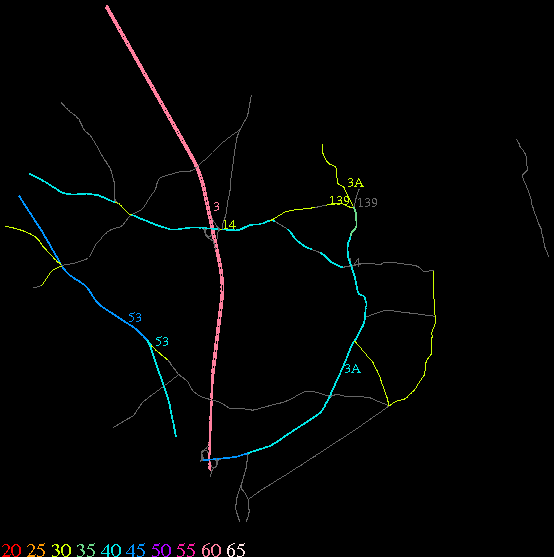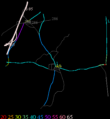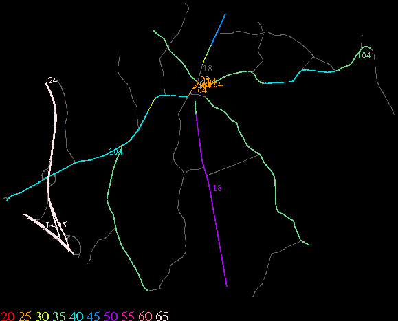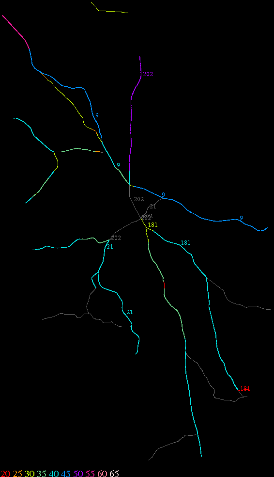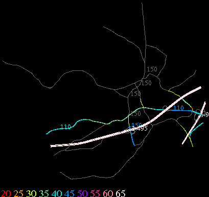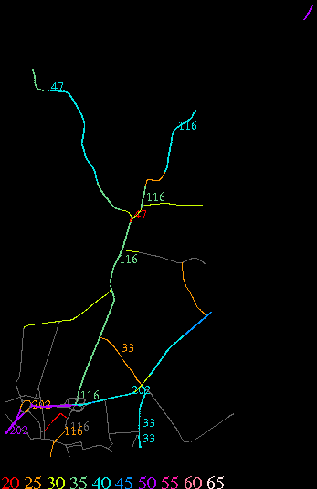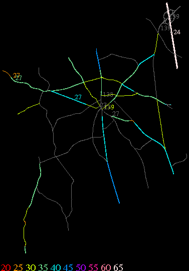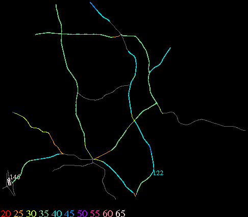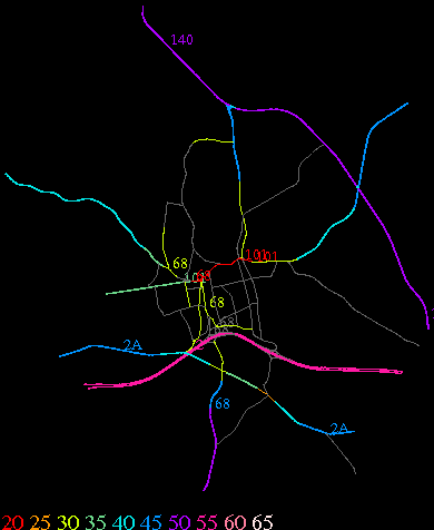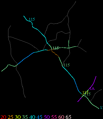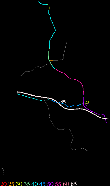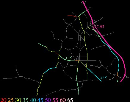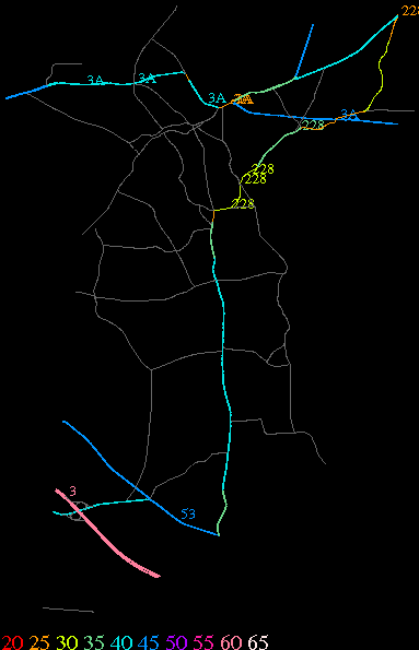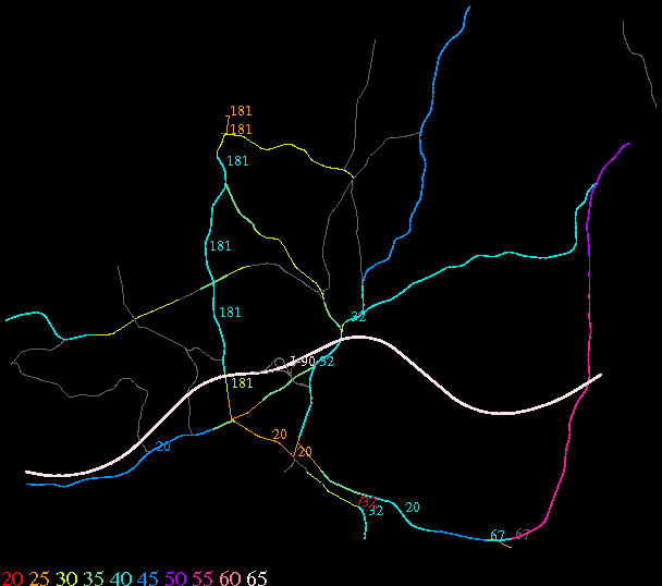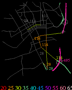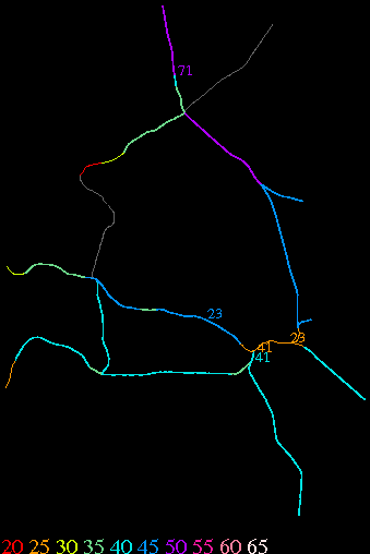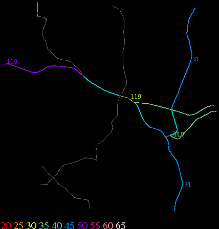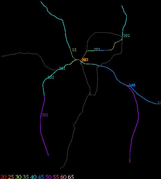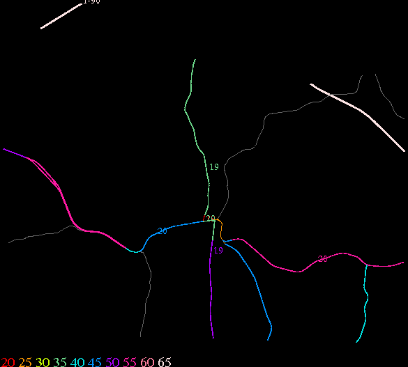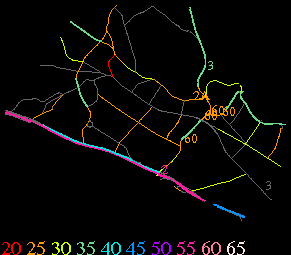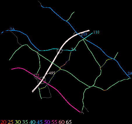 Links lead to maps of roads in Massachusetts cities and towns. The scale is 30 meters per pixel. Color indicates posted speed limit.