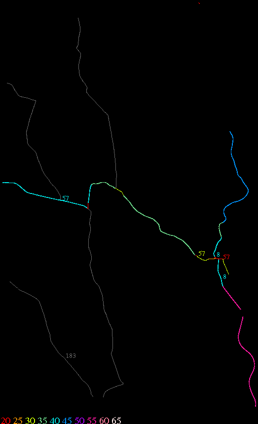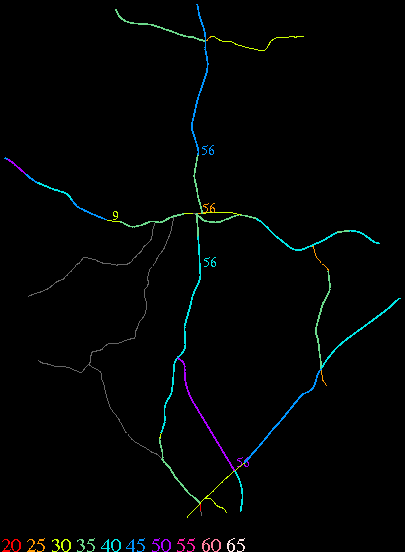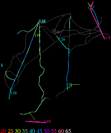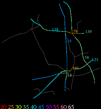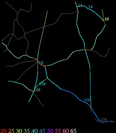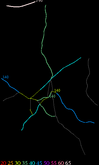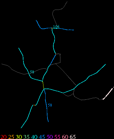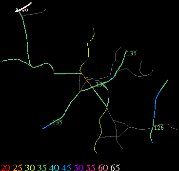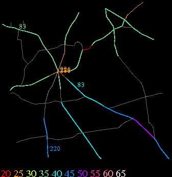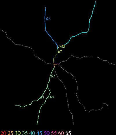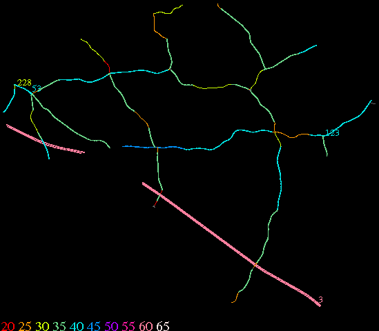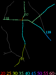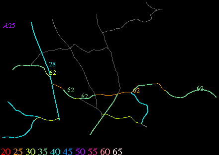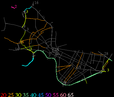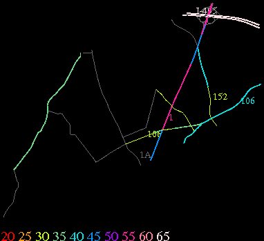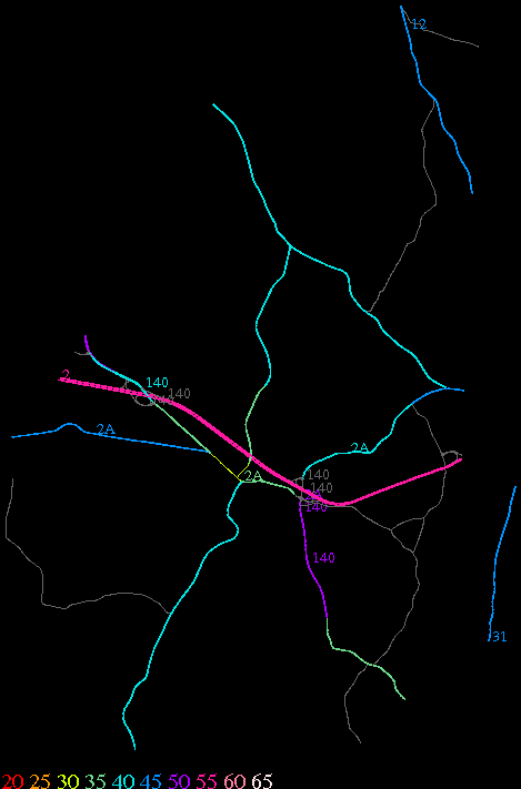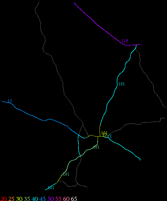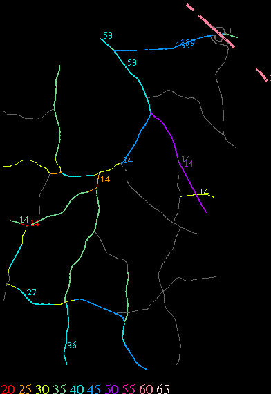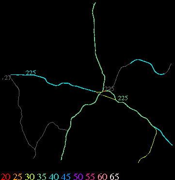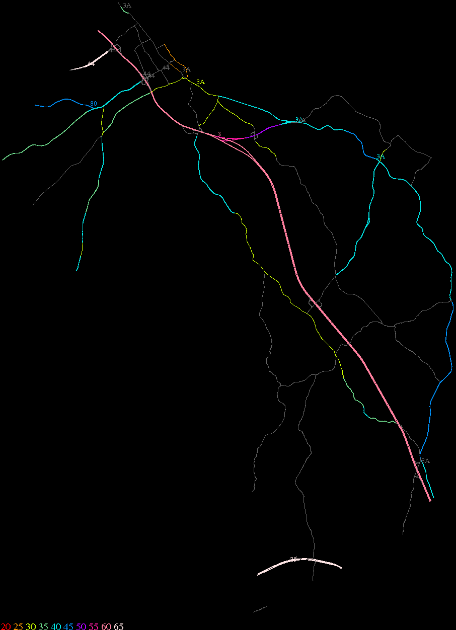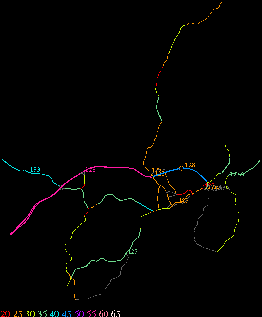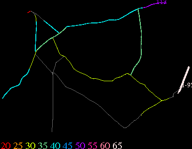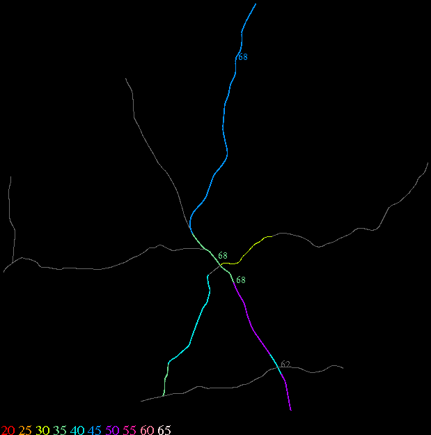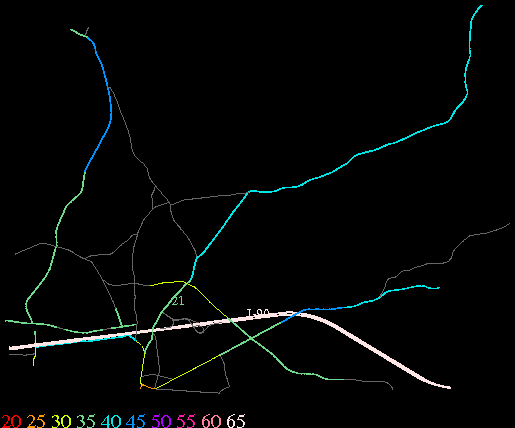 Links lead to maps of roads in Massachusetts cities and towns. The scale is 30 meters per pixel. Color indicates posted speed limit.