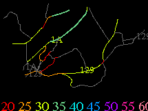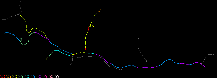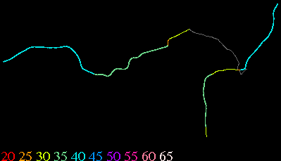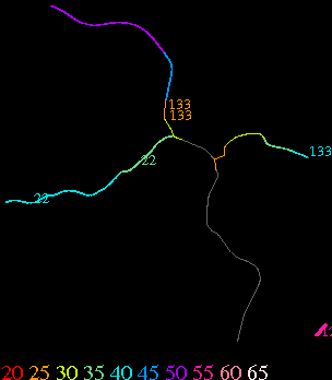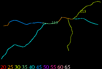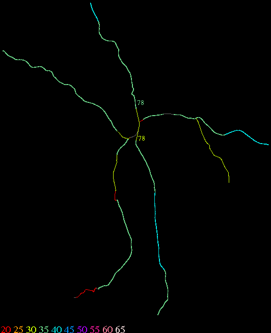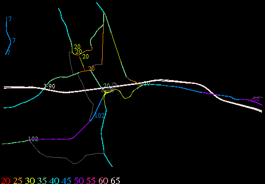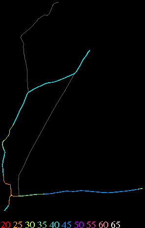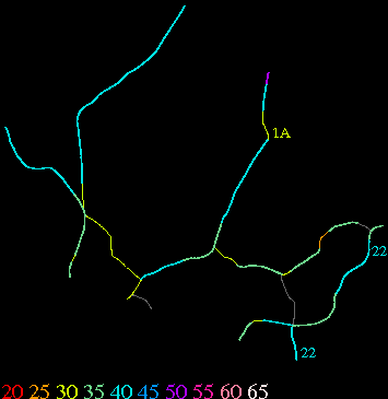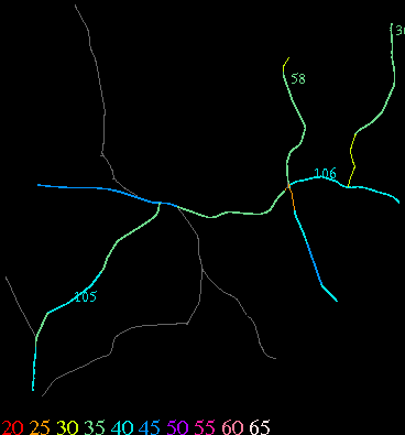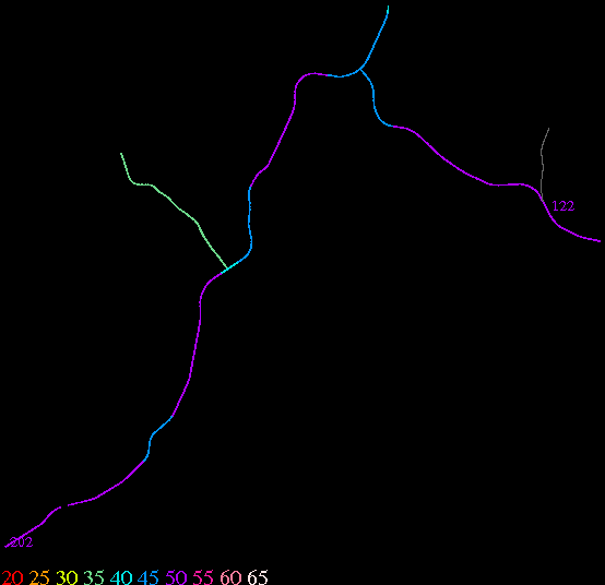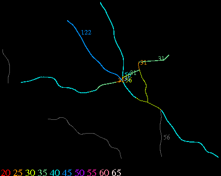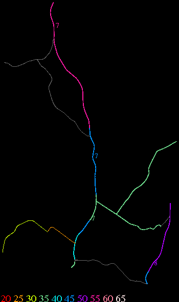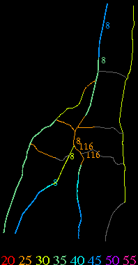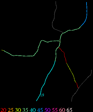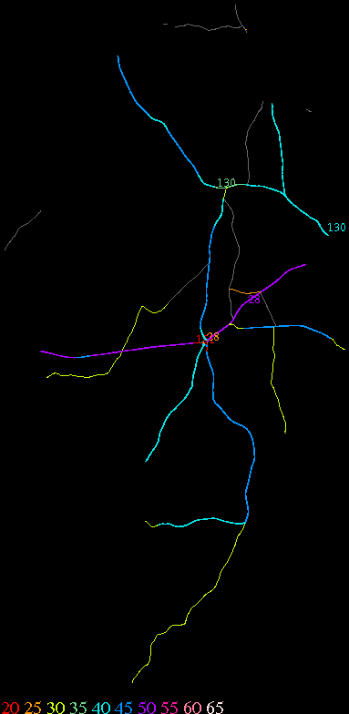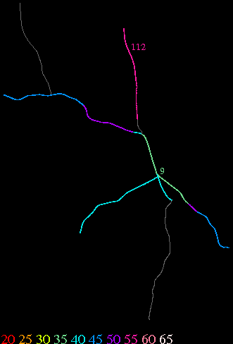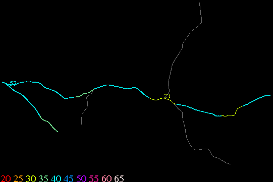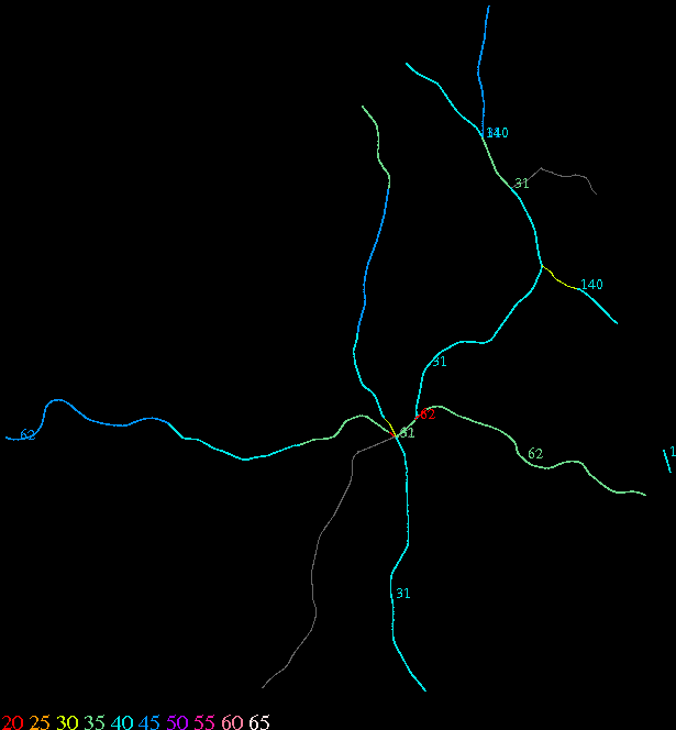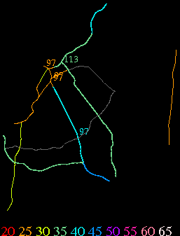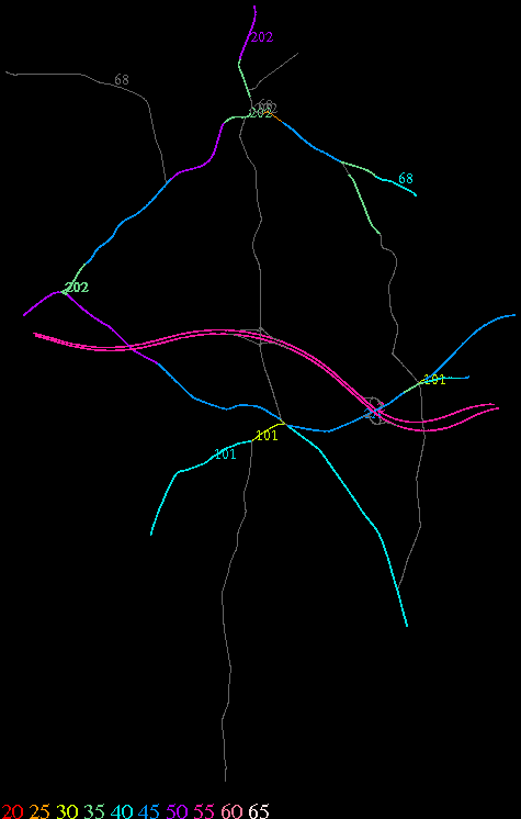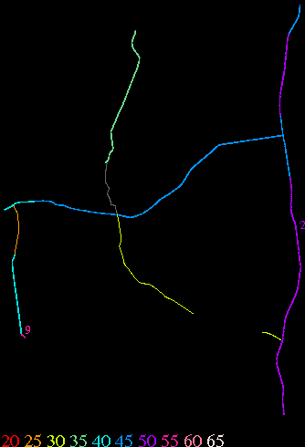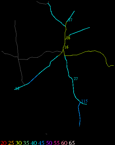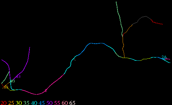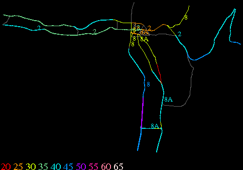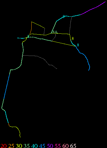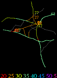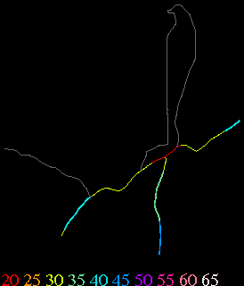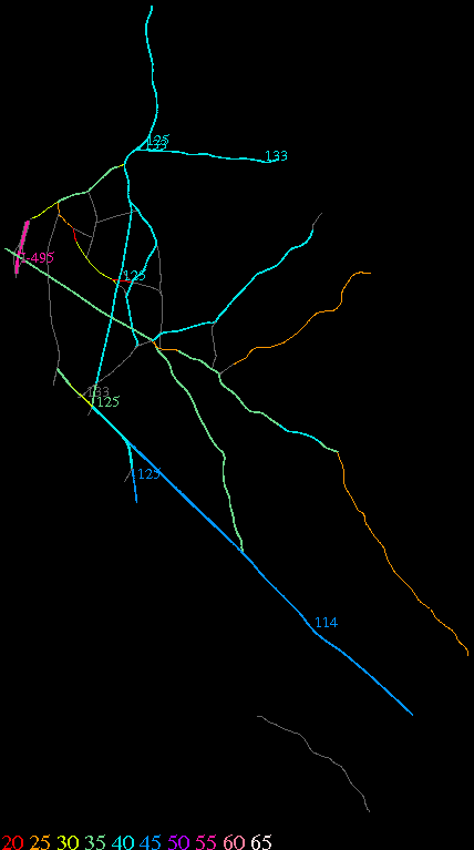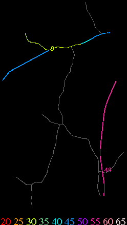 Links lead to maps of roads in Massachusetts cities and towns. The scale is 30 meters per pixel. Color indicates posted speed limit.