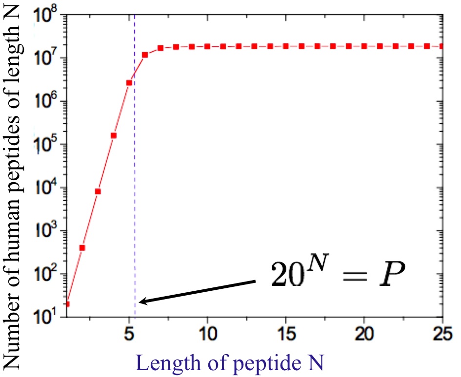 In principle all human peptides can be recognized from sequences of length 5-6.