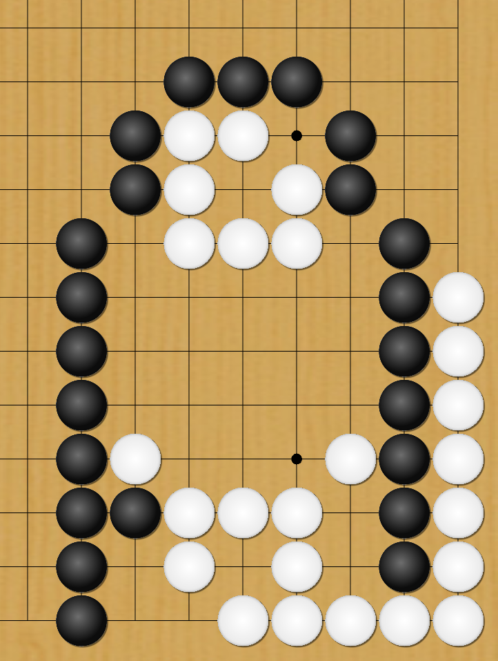 Black to move. Assume that white can win any ko.